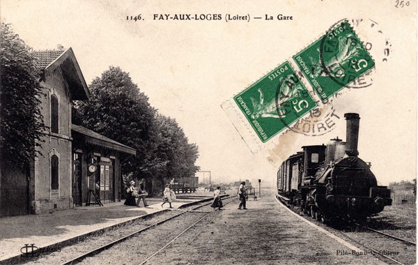 L’arrivée en 1875 d’une ligne de chemin de fer à Fay-aux-Loges a permis d’accompagner le développement d’activités économiques d’un village peuplé de 1750 habitants tant pour le transport des voyageurs vers Orléans et Montargis que pour l’essor du transport de la production des scieries proche de la forêt d’Orléans ( bois de mines), de l’agriculture ( blé et céréales des premières coopératives), et enfin l’acheminement du charbon et divers marchandises pour la distribution locale.